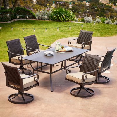 7 Piece Patio Dining Set With Swivel Chairs. Shop for patio dining sets and bring your favourite humans together with the perfect dining table. For stubborn stains, use a solution of 1 cup bleach to 1 gallon water. Clean fabric with mild soap and water, let air dry; Sears has patio dining sets for enjoying meals outdoors.