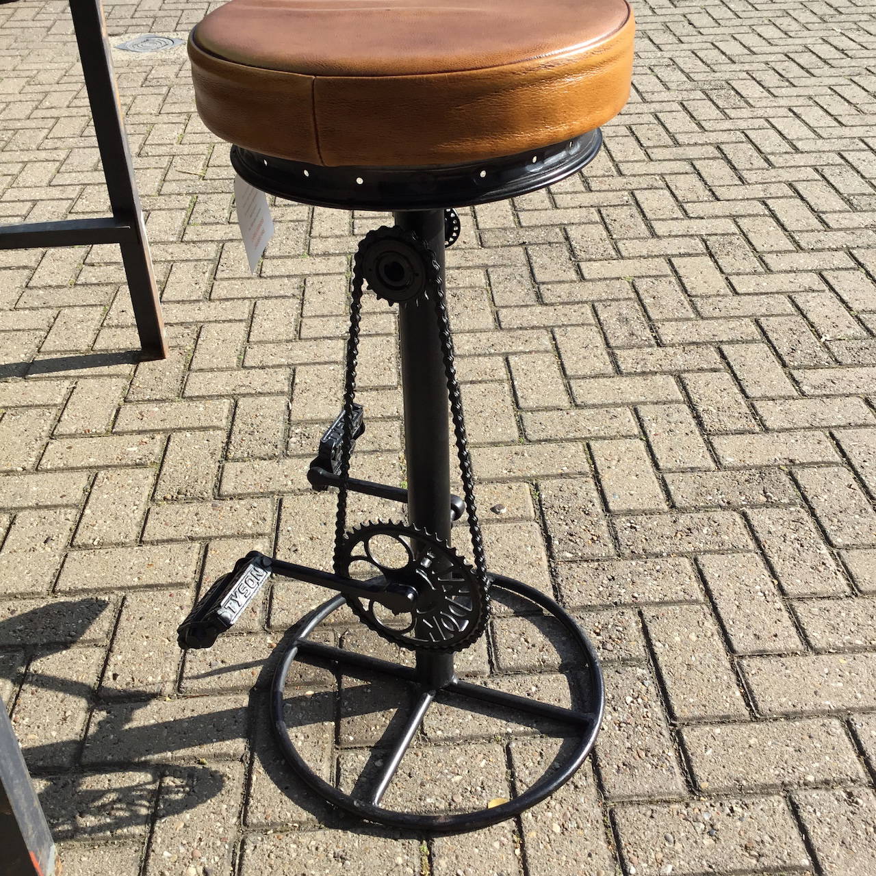 Bicycle Bar Stool. Bike seat pedal bar stools tan leather bar stools with bike. Industrial bicycle pedal bar stools meldon house home. This unique style bar stool will prove an attractive focal point to any room you place it in. Shop industrial 32 x 6 inch iron pedal and gears bar stool by.