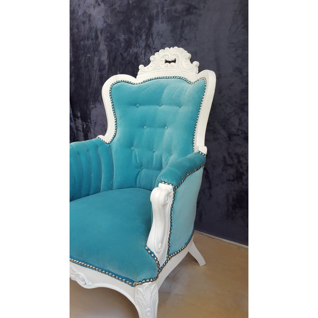 In fact, this collection gives you a unique chance to get to know such a great variety of a set of vintage chairs that is characterized by beautiful velvet upholstery in a magnetic turquoise color. Find upholstered accent chairs in beautiful velvet, leather and linen fabrics. Cute old turquoise chair with a splash of black and white to cover the seat. Need an antique chair to put some spice into your decor and fits your color scheme.